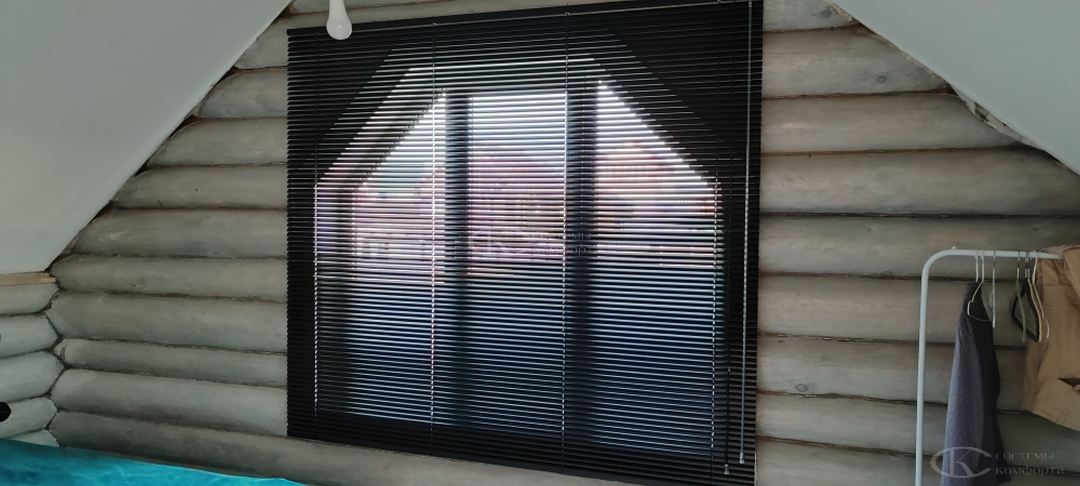 Жалюзи можно собрать полностью или оставить опущенными, но повернуть планки параллельно подоконнику — так свет будет беспрепятственно проникать в помещение.